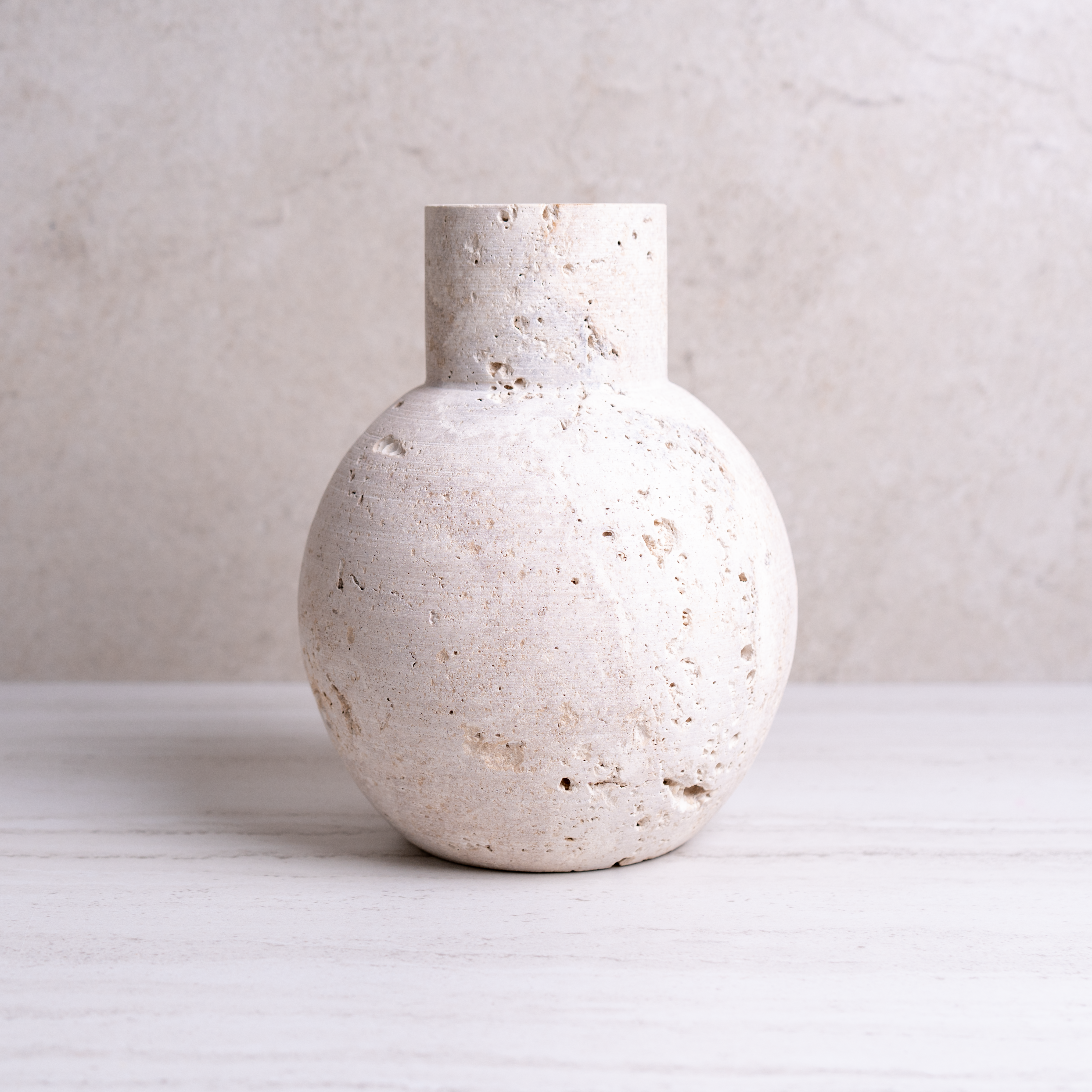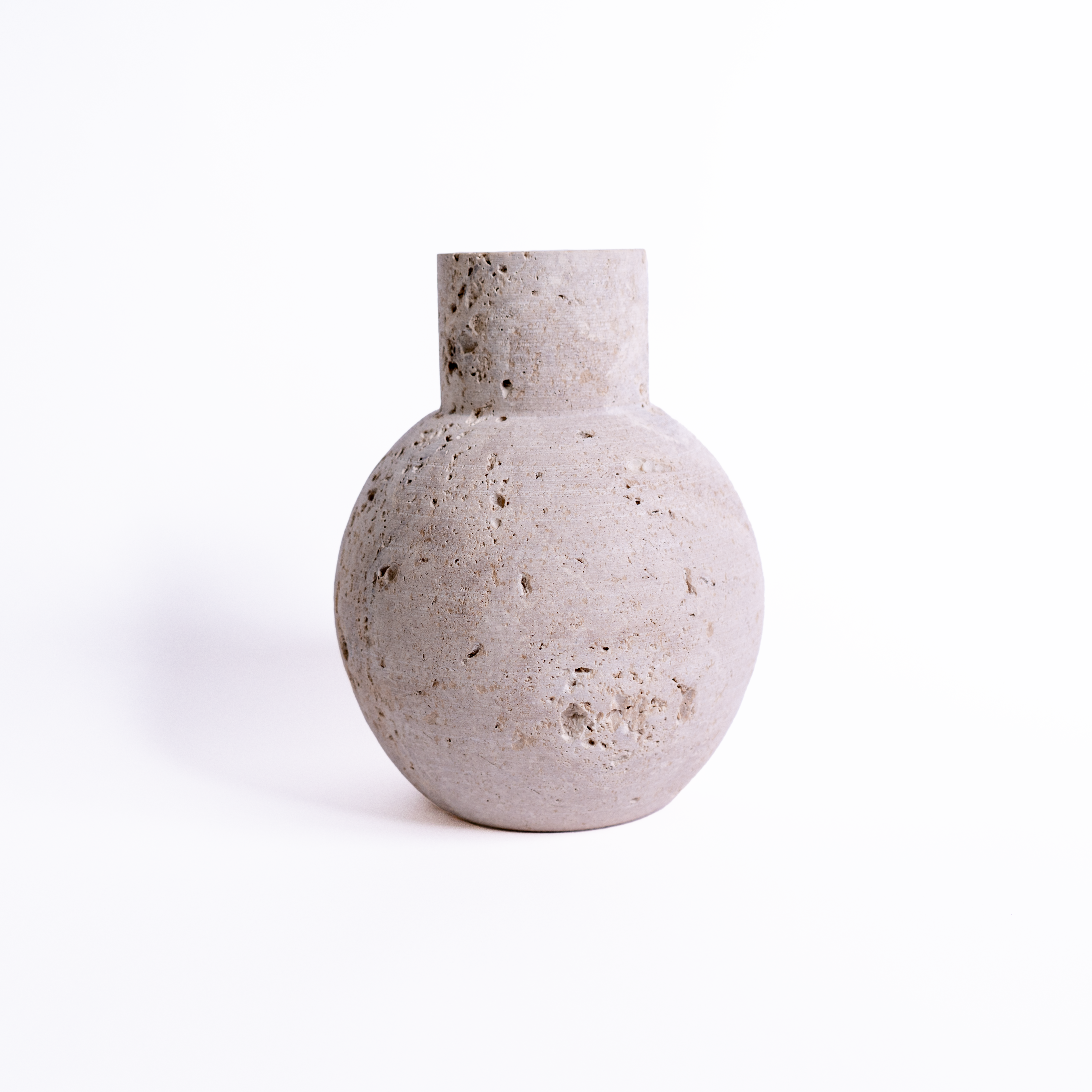 The Vestra vase is where form meets function. Handcrafted from solid travertine stone, its design pays homage to modern brutalist aesthetics while maintaining minimalist grace. The raw textures and subtle tonal variations of travertine make each piece unique. Perfect for showcasing dried arrangements or as a standalone sculpture, Vestra is a statement of timeless elegance and a grounding presence in any interior.